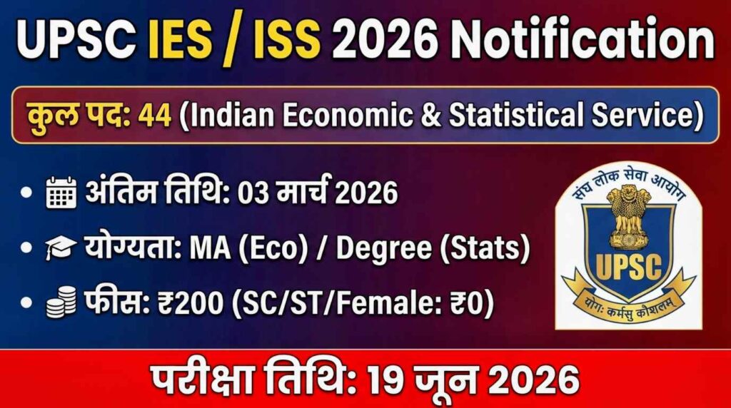 UPSC has released the IES ISS 2026 notification. Apply online for Indian Economic and Statistical Service by March 3, 2026.